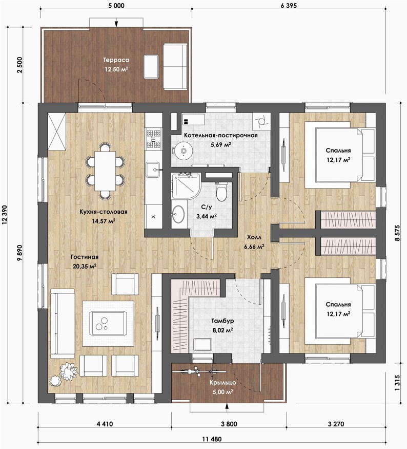 12,39х11,48 м